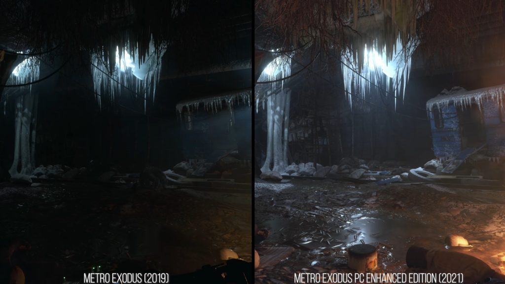 Mais depuis, les technologies hardwares comme softwares ont pas mal avancé, mine de rien, et cela a finalement permis de rendre Exodus encore plus beau qu’il ne l’est. Nvidia a en effet déployé cette semaine un nouveau pilote dédié à Metro : Exodus PC Enhanced Edition, la toute dernière édition du jeu. Gratuite pour ceux qui possédaient déjà le jeu de base, cette nouvelle édition est bien plus gourmande que la précédente, mais à raison.