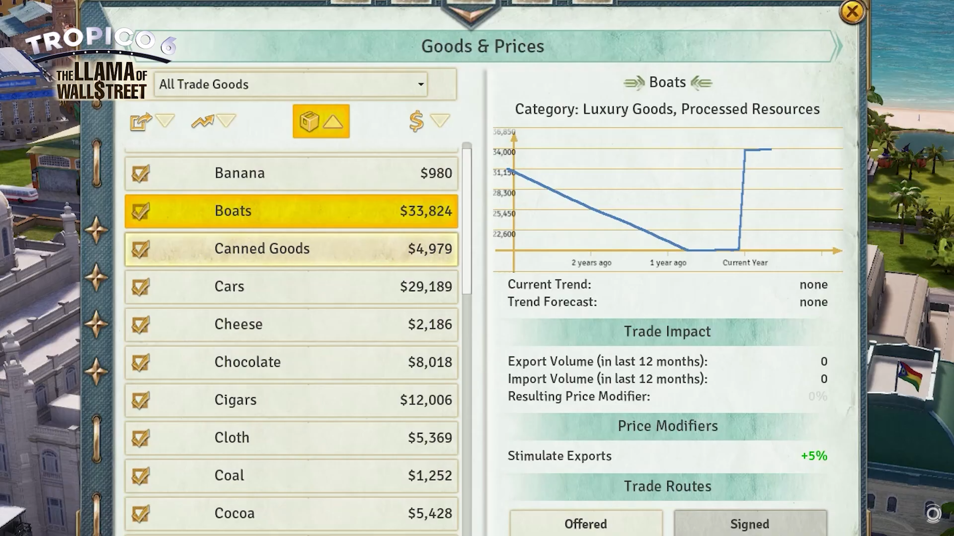 The Llama of Wall Street sera axé (vous l’avez deviné si vous êtes cinéphile) sur l’économie : le DLC va peaufiner tout cet aspect du jeu. Le marché mondial va régulièrement changer au cours de la partie, et VOUS pourrez vous aussi l’influer. A vous donc de savoir quoi produire et quand afin de devenir toujours plus riche. C’est un ajout extrêmement intéressant car il ajoute plus de dynamisme au late game du jeu, et va vous obliger parfois à arrêter de produire certaines ressources pour se consacrer à d’autres, sauf si vous avez le monopole sur un marché.