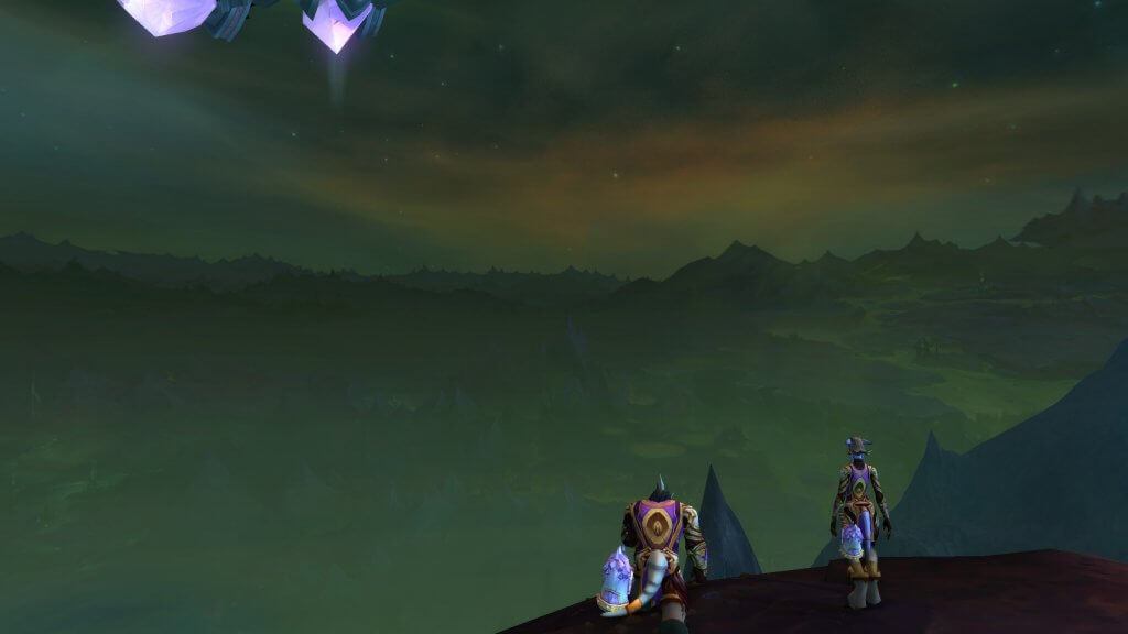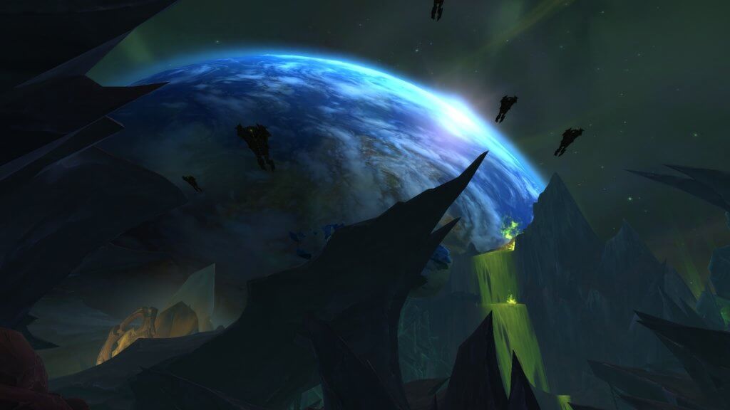 Nous commenceront donc par un voyage à l’Exodar, ville ô combien peuplée et active de l’Alliance. Après un event, Velen et Illidan vous conduiront directement sur Argus qui, pour rappel, est en orbite d’Azeroth depuis la chute de Kil’Jaeden. Vous vous établirez dans une zone appelée Krokul, où ce qui semblent être des Draeneïs avec un côté Roués (les souvenirs de Burning Crusade reviennent en force !) vous donneront des quêtes visant à établir une tête de pont. Les scrennshots pris par nos confrères de Wowhead, que vous pouvez découvrir ci-dessous, vous donnent un bon aperçu de ce qui nous attend dans cette mise à jour 7.3. ; on notera aussi la présence de nombreux vaisseaux en orbite d’Azeroth, comme pour établir un blocus. Comme quoi, téléporter Argus n’était peut-être pas une idée lumineuse, Illidan…