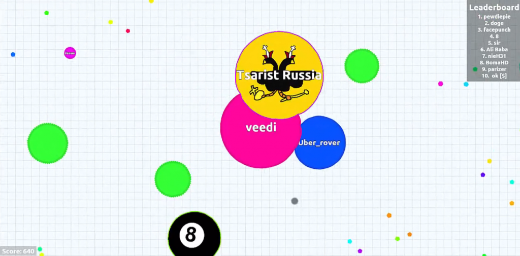 On se rappelle de sites comme ArmorGames ou JeuxJeuxJeux qui permettaient de s’amuser pendant des heures sur des jeux assez simples en flash ; et en ce moment, la mode semble revenir, notamment avec Agar.io. Qu’est-ce donc que cela ? Un jeu d’une simplicité enfantine, mais paradoxalement, très addictif ! On y incarne une planète ou une cellule – un gros machin rond en tout cas – devant absorber les autres plus petites, mais éviter les plus grosses. Il faut donc anticiper et calculer des dizaines d’éléments en quelques secondes afin de d’obtenir le plus gros score possible.