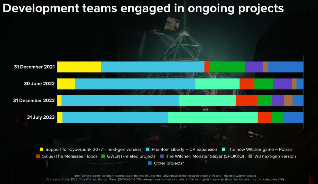 Kiciński précise qu’à l’heure actuelle, environ 250 développeurs travaillent sur Polaris, et que l’équipe qui travaille sur Phantom Liberty est encore plus importante.