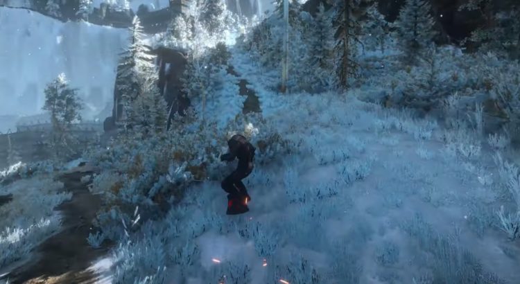Avec ce mod, Geralt de Riv fait du snowboard stylé dans les montagnes de Skellige
