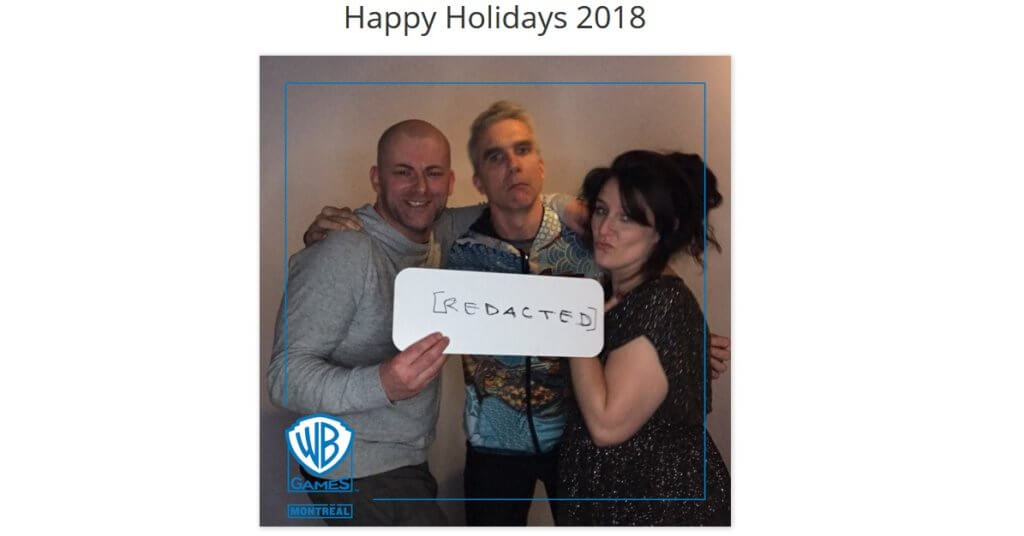 Début décembre, Valerie Valvez teasait déjà un nouveau jeu Batman ayant pour thème la Cour des Hiboux ; Warner Bros Montréal continue sur cette lancée, avec une image plus qu’intéressante ! Le compte Twitter de Geoff Ellenor a en effet souhaité une bonne année à ses followers, avec un lien redirigeant vers un GIF sympathique. On y voit en effet certains membres de l’équipe de développement faire une petite dance en tenant un papier sur lequel est indiqué « redacted« , cachant bien évidemment le nom du projet.