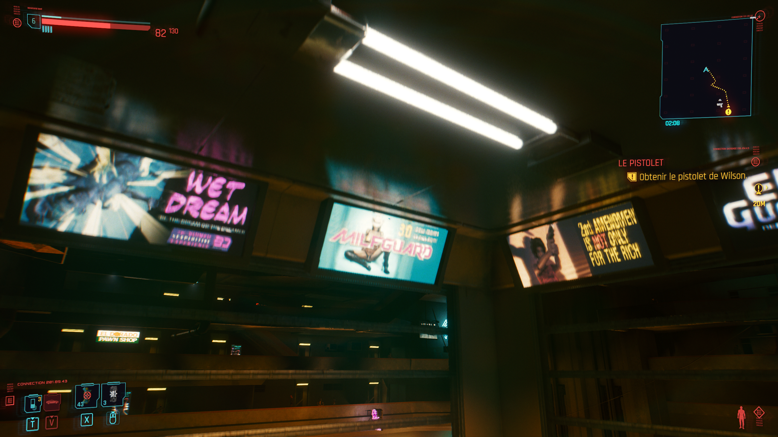 Dans un échange avec Kotaku, le senior quest designer Philipp Weber a expliqué : « Nous voulions que Night City soit plutôt ouverte, sexuellement parlant. Quelque chose de taboo ou d’étrange selon les standards modernes deviendrait assez commun dans Cyberpunk 2077″. Il est vrai que la ville futuriste a son content d’activités allant de la prostitution classique à des publicités très suggestives, comme celle que j’ai découverte dans l’ascenseur menant à l’appartement de V :