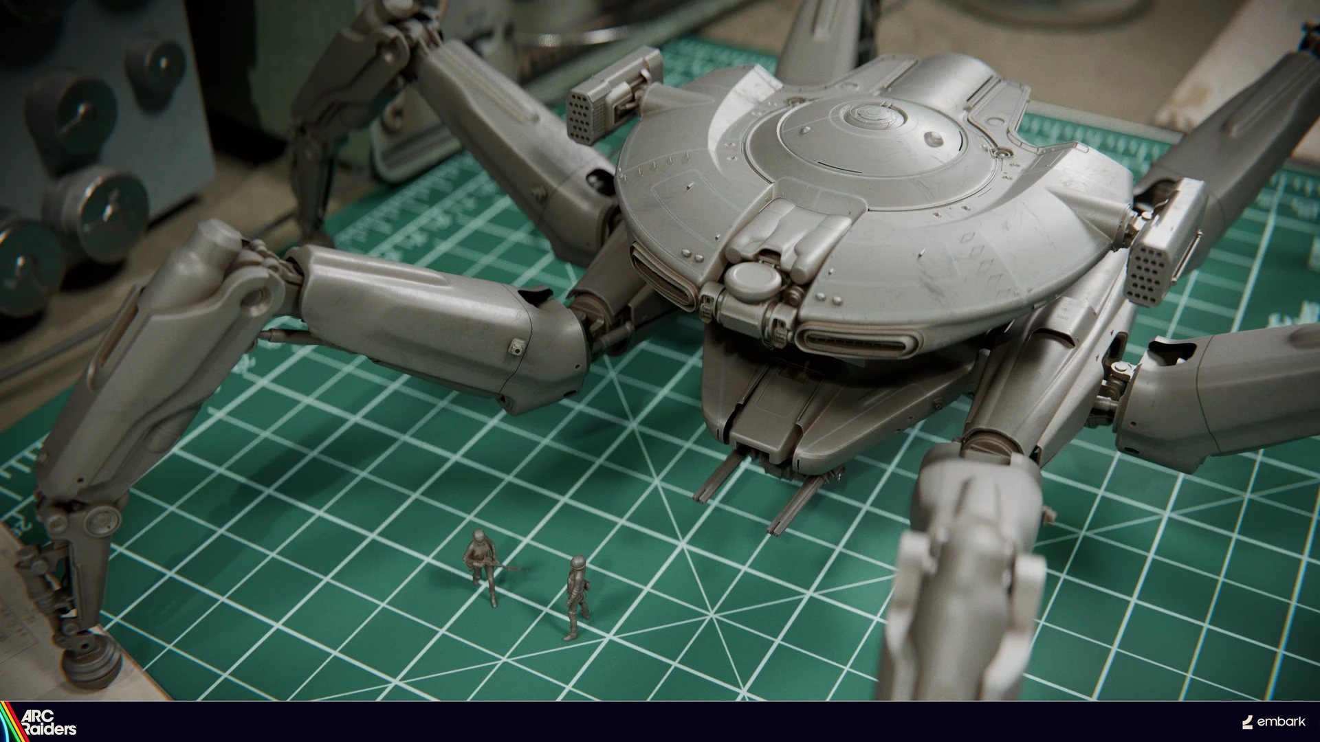 Il est intéressant de noter que les ennemis réalisés par Esbjörn Nord et Noax, un autre artiste, ont une dimension insectoïde voire arachnide. A l’heure actuelle, la plupart des ennemis dans ARC Raiders tendent à rouler ou voler, les marcheurs étant en petit nombre. Les designs visibles ci-dessous, dont certains sont carrément réalisés en versions physiques, cassent avec ce que l’on connaît en jeu et donnent une vague idée de ce qui est à venir ; après tout, la roadmap pour début 2025 indique de nouvelles menaces d’ARC majeurs, on peut donc imaginer que les visuels de M. Nord auront une certaine influence sur ce qu’on découvrira bientôt à la surface.