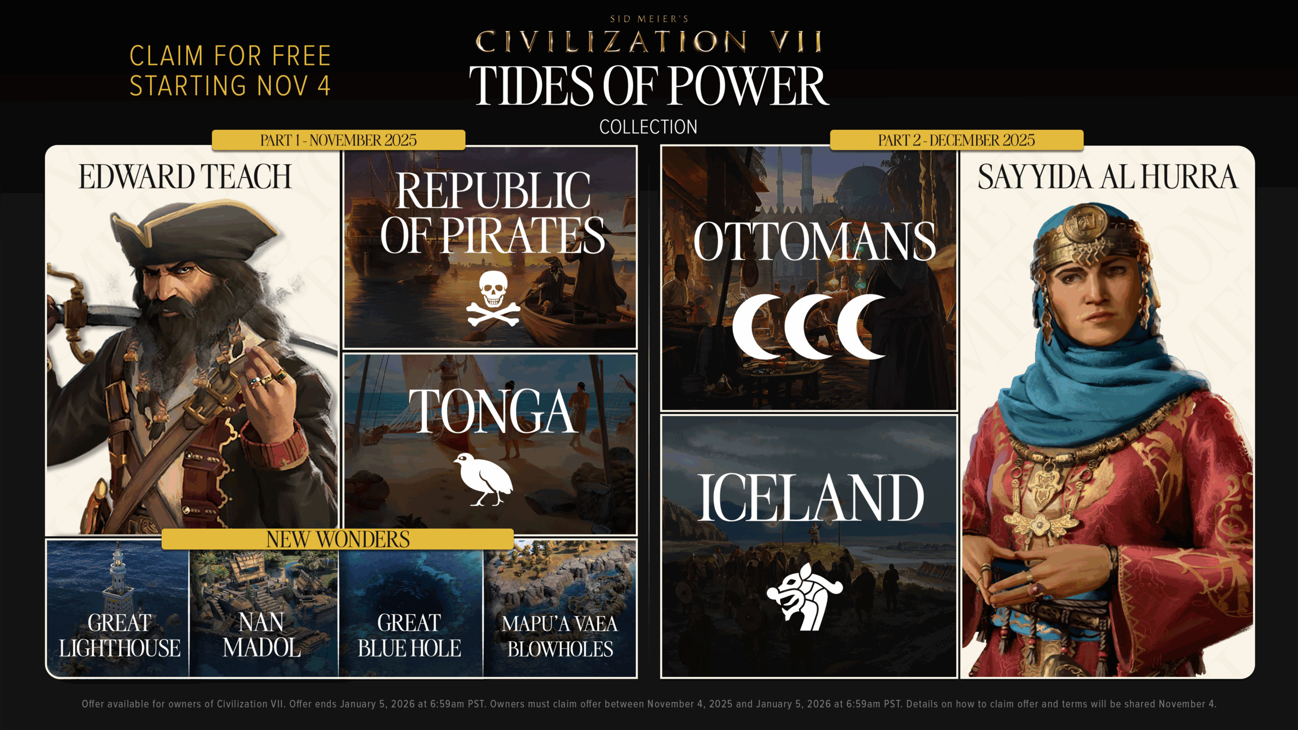 Firaxis Games et 2K semblent bien l’avoir compris, car un article officiel vient de détailler d’importants changements à venir avec la mise à jour 1.3 et même au-delà. Tout d’abord, le DLC Tides of Power sera free-to-keep du 4 novembre au 5 janvier prochains. Ce contenu additionnel apportera les nouveautés suivantes :