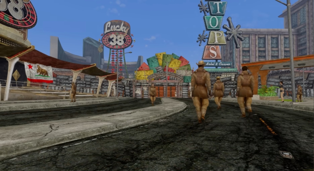 Ces dialogues coupés proviennent d’une version bêta du jeu ayant fuité en décembre dernier, riche en éléments abandonnés lors du développement et qui offrent une lecture intéressante et nouvelle de ce jeu culte. À l’origine, les développeurs prévoyaient que les joueurs puissent continuer à explorer le Mojave après le générique de fin, dans un monde modifié par leurs décisions durant la campagne principale. Dans la version finale sortie en 2010, cette idée a été abandonnée pour des raisons de temps et de contraintes techniques, laissant place au célèbre diaporama qui conclut l’histoire.