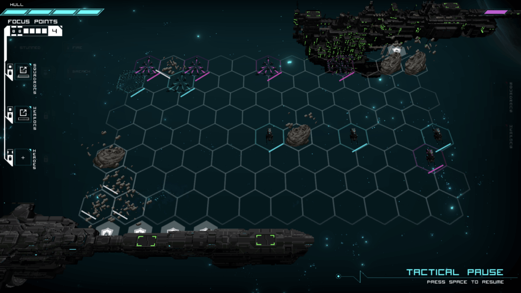 Le jeu se veux en partie similaire à FTL et le pari est réussi, on retrouve le système de gestion d’essence, de scraps et de saut dans des systèmes cependant les combats sont originaux.