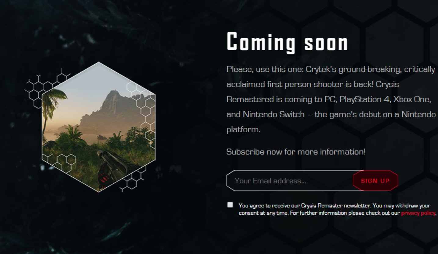 Après le teasing du premier avril, c’est quasiment officiel, Crysis : Remastered est en route ! Une image a été affiché sur le site officiel avant d’être subitement enlevée, mais c’était déjà trop tard ; des screenshots ont été repris, et on a déjà quelques infos !