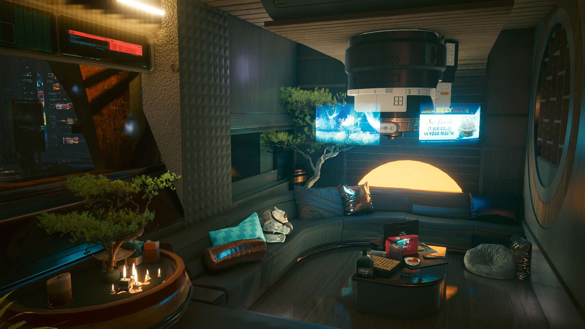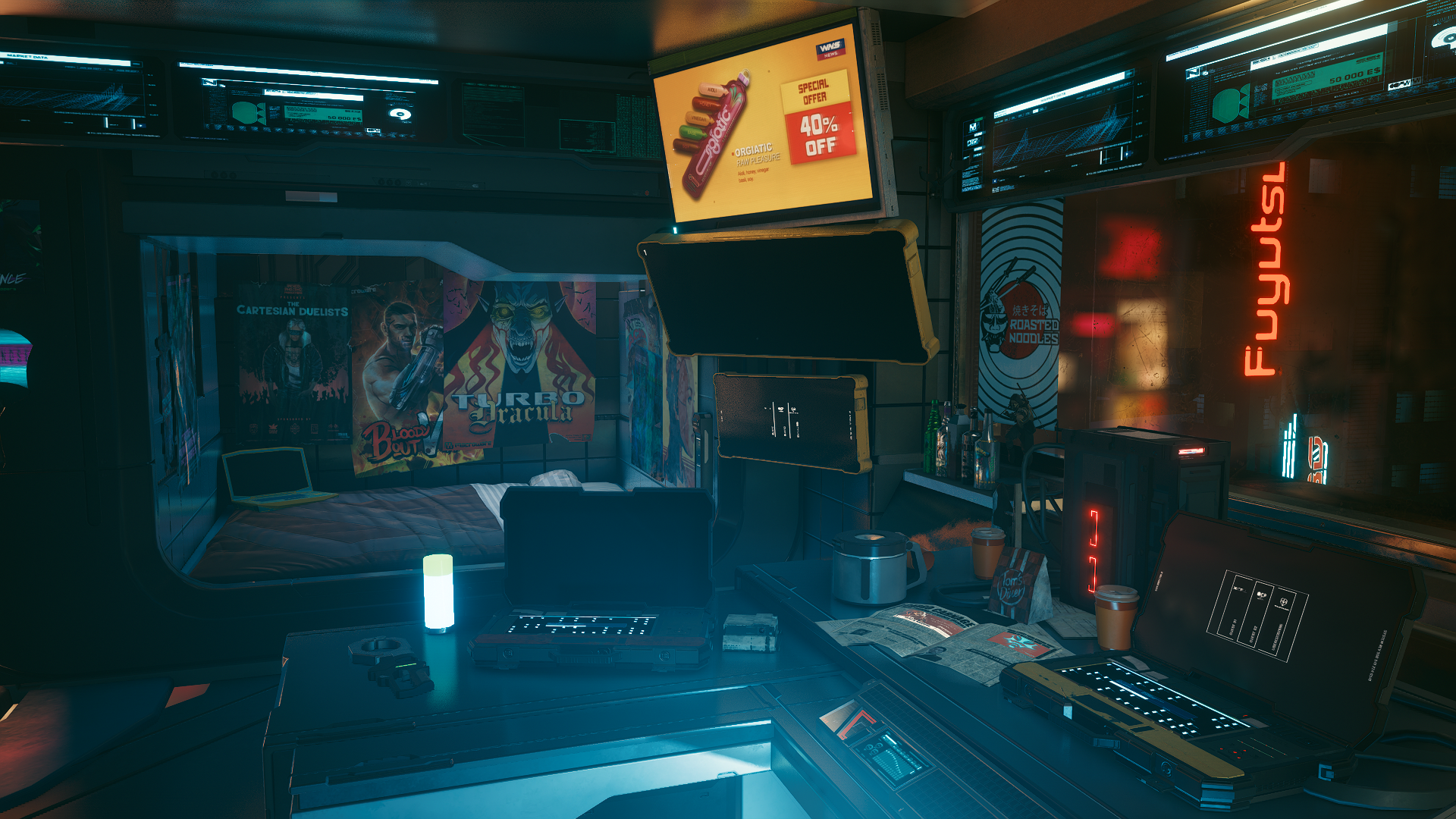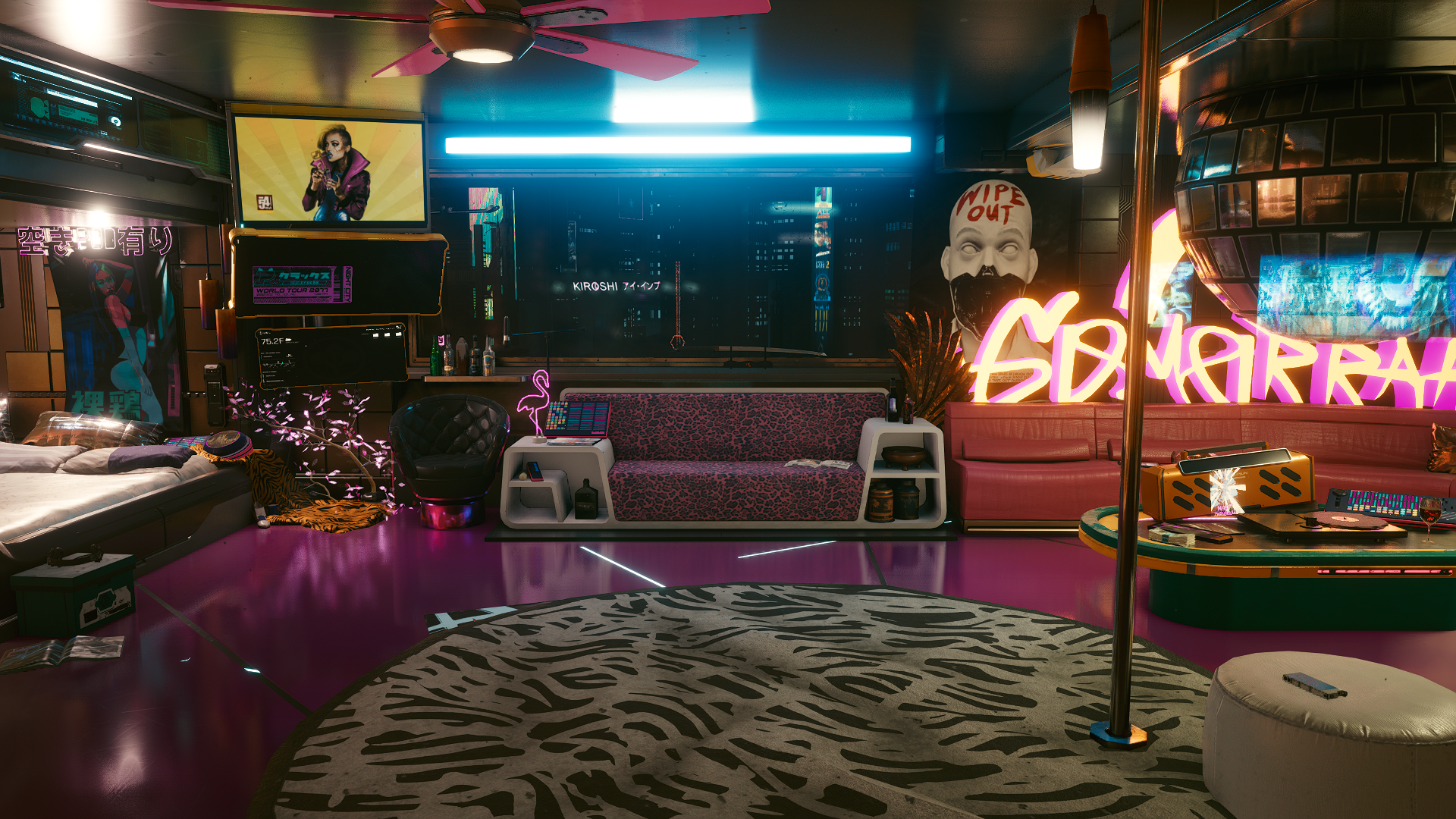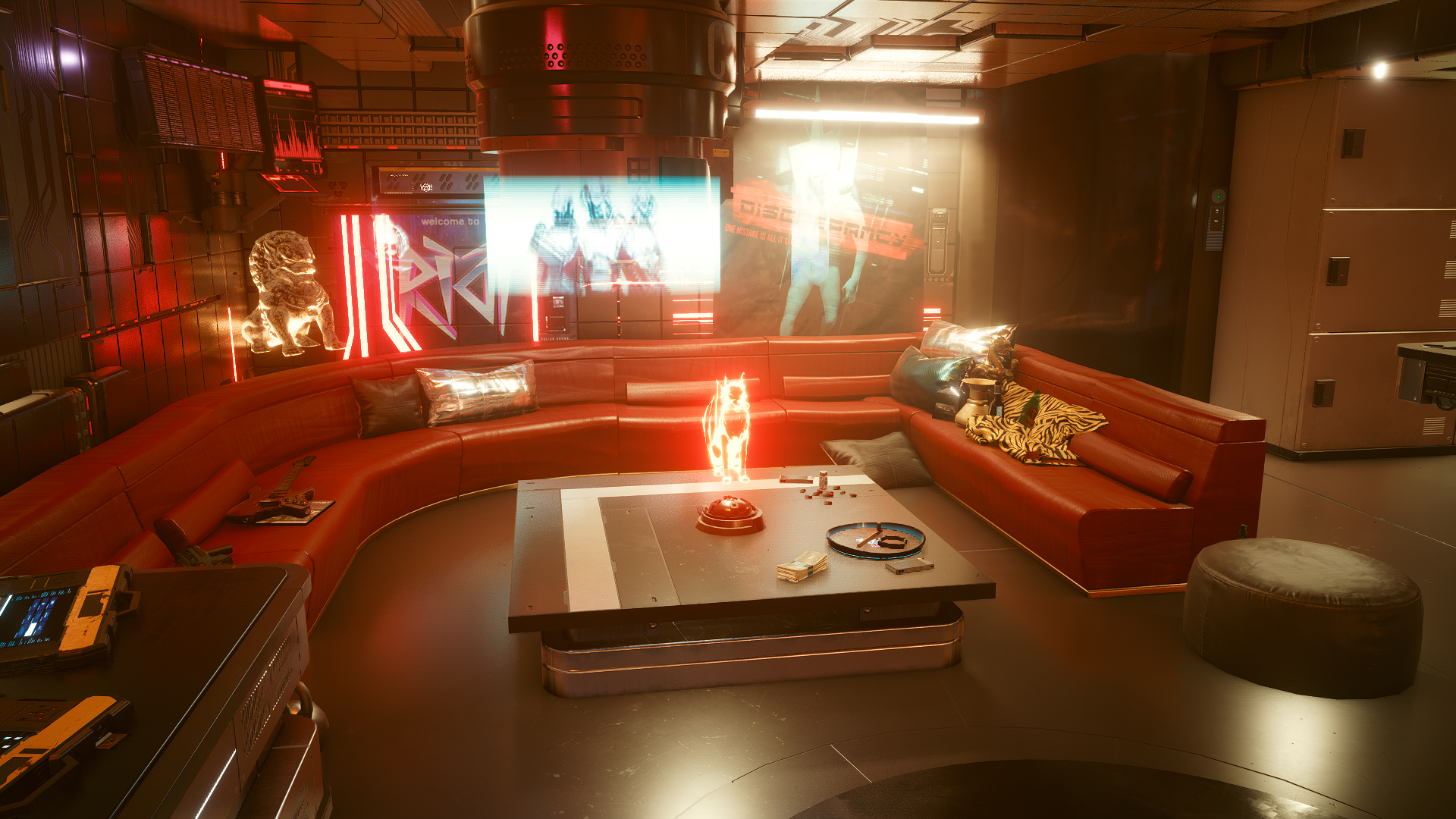 Dans Cyberpunk 2077, l’appartement de V peut être légèrement customisé au fur et à mesure de votre progressions : posters et objets seront ajoutés après telle ou telle mission, et vous pourrez même adopter un chat.
