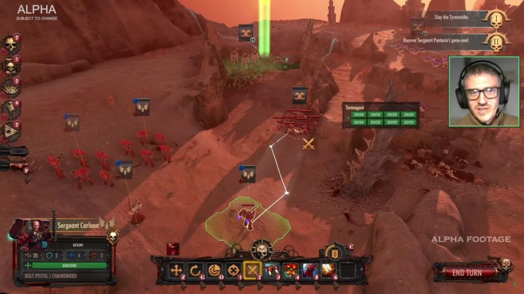 Si les règles classiques des combats au tour par tour s’appliquent – mouvement par cases, pénalités en tirant par-dessus un allié et autres champs de vision – la notion de rapidité est importante. Les attaques réalisées par les Blood Angels permettent de gagner une ressource appelée momentum (qui sera probablement traduit par « élan » en français), laquelle a un impact sur les actions à venir : il en en effet possible de la dépenser pour obtenir des points d’action supplémentaires ou encore des améliorations.