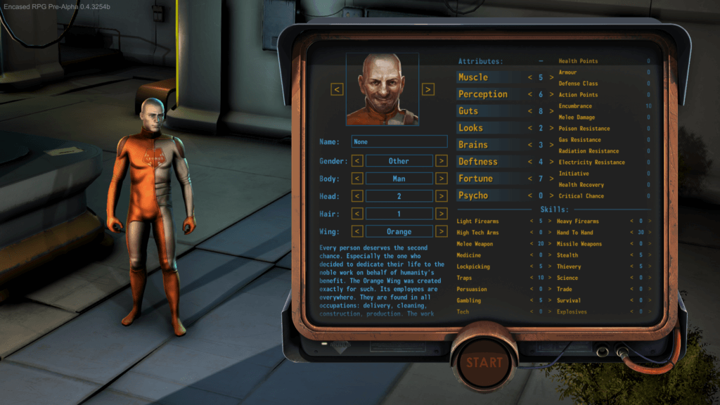 Les développeurs ont expliqué que le jeu sera visuellement proche des années 50, teinté d’apocalypse bien sûr. Le fait que le trailer est vraiment inspiré par l’univers de Fallout, il ets inutile de le nier ; mais si l’on se réfère aux screenshots ci-dessous, Encased semble pourtant avoir son propre univers. 6 factions complètes sont présentes dans le jeu, lequel a une durée estimée d’une trentaine d’heures, du moins pour l’histoire principale. Quelques éléments sur le jeu :
