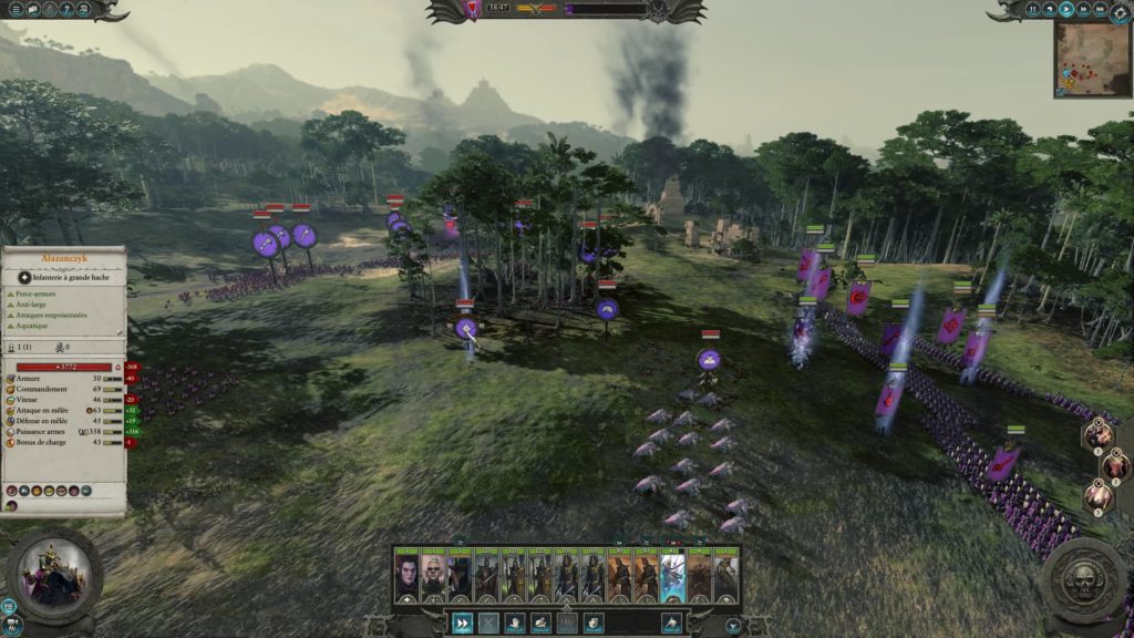 Le clan Eshin commence au Pays Gnoblar, une zone à l’extrême-est de la map ajoutée pour l’occasion – oui, ça prépare clairement le terrain pour Total War : Warhammer 3. Si les ennemis immédiats ne poseront pas énormément de soucis, il faudra peut-être un peu de temps pour maîtriser les complots ! Cette mécanique se divise en deux temps : d’abord, d’autres clans Skavens vous demanderont d’accomplir diverses missions en leur nom, ce qui coûtera quelques tours d’indisponibilité pour vos agents. Les récompenses sont néanmoins intéressantes, et permettront, sur le long terme, de mieux optimiser ses compositions d’armée.