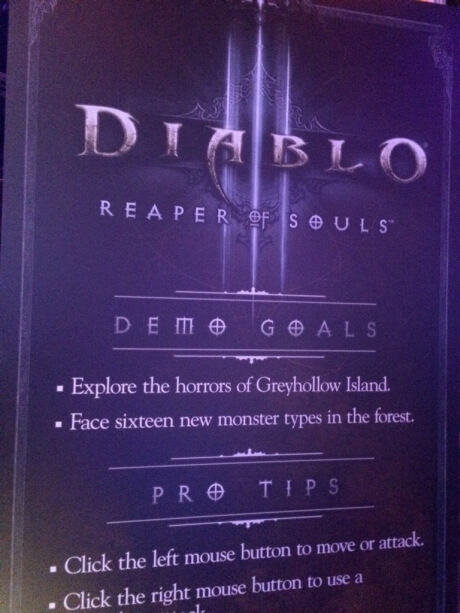 Nos collègues de chez JudgeHype, déjà sur place, on posté une photo qui tease une nouvelle zone à venir sur Diablo III, avec de nouveaux monstres !! On a de quoi être excités mais… petit bémol, l’affiche est estampillées Reaper of Souls. Pour le moment, pas de logo sur une nouvelle extension…