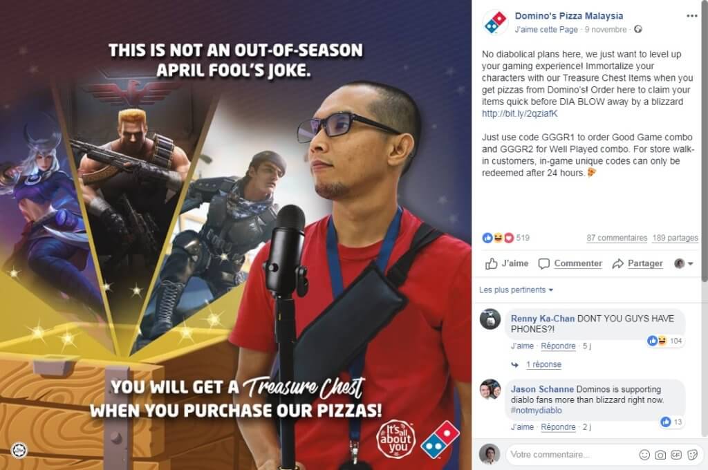 Domino’s Pizza se paye Diablo : Immortal sur Facebook, et c’est quand même assez délicieux