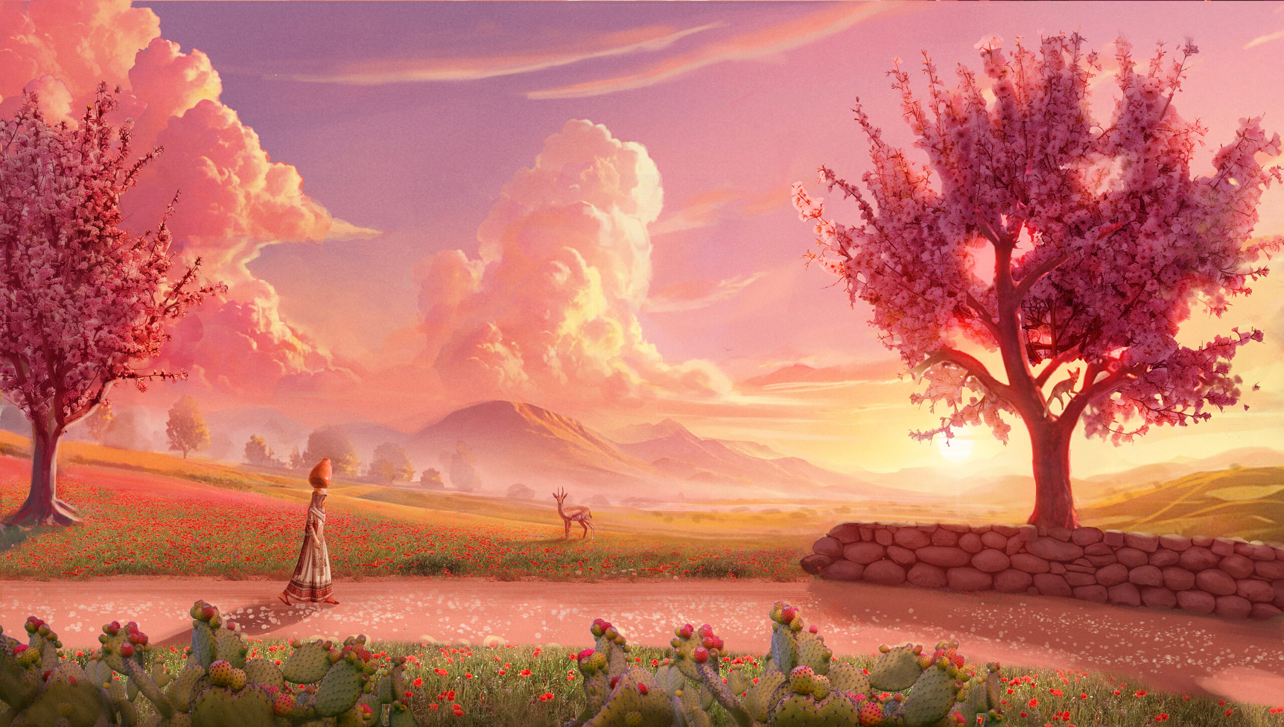 Dreams on a Pillow tient son nom de l’histoire du personnage principal, Omm ; cette jeune mère fuit avec d’autres personnes l’avancée israélienne en pensant avoir pris avec elle son nouveau-né, avant de se rendre qu’il s’agit en fait d’un oreiller. On peut donc s’attendre à une narration puissante, dont l’intimité ne sera que grandie par le conflit environnement et la tragédie de la Nakba.