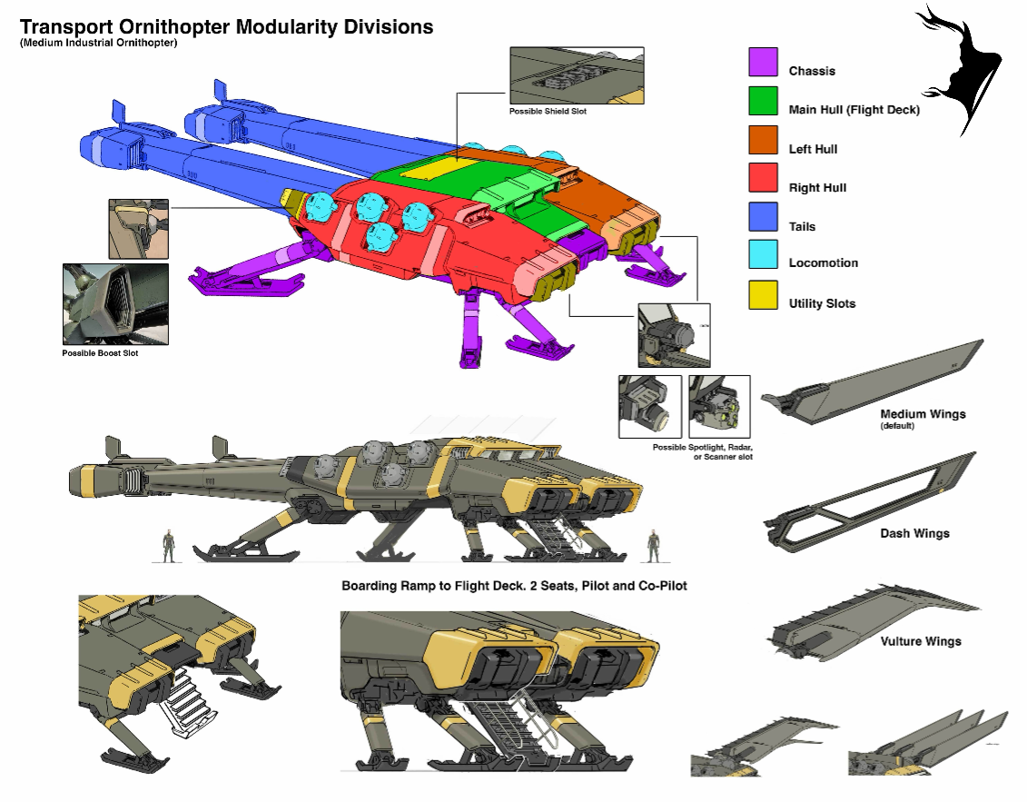 En amont de cette sortie attendue, Funcom a publié un article de blog soulignant les différents différentes manières de parcourir les airs. Ainsi, les « carrier ornithopter » serviront à transporter les « sandcrawler » au milieu d’une tempête d’épice ; un seul joueur est nécessaire pour piloter cet appareil, taille bien plus modeste que les mastodontes utilisés par les Grandes Maisons. Cela permet donc à d’autres joueurs de patrouiller autour du sandcrawler, afin de sécuriser ses environs immédiats.