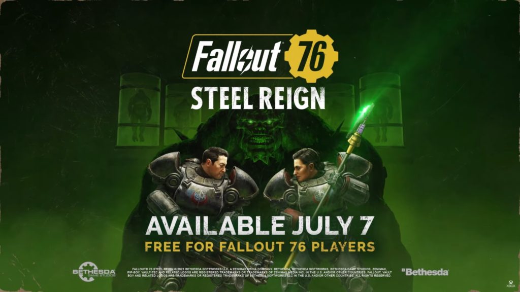 Fallout 76 a été mis à l’honneur lors du Xbox et Bethesda Game Show, à l’occasion de l’E3 2021. Le prochain chapitre de la storyline dédiée à la Confrérie de l’Acier, Steel Reign, a été annoncé pour le 7 juillet prochain. Il sera disponible sur toutes les plateformes gratuitement, et en attendant de savoir quelles fonctionnalités l’accompagneront, vous pouvez retrouver le trailer d’annonce ci-dessous :