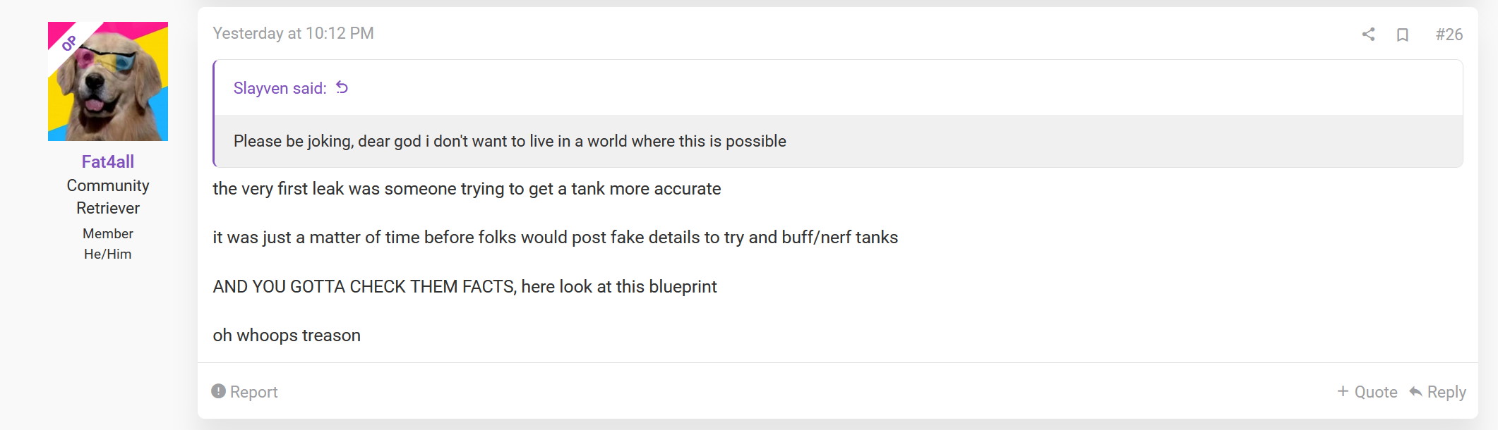 Bien entendu, Gaijin a immédiatement supprimé le post en question, afin d’éviter toute répercussion légale – et il n’est pas faux de dire que la Chine est un peu à cheval sur ce genre de chose. L’éditeur a également été obligé de réitérer que de telles pratiques sont condamnables et n’ont pas leur place sur des forums.
