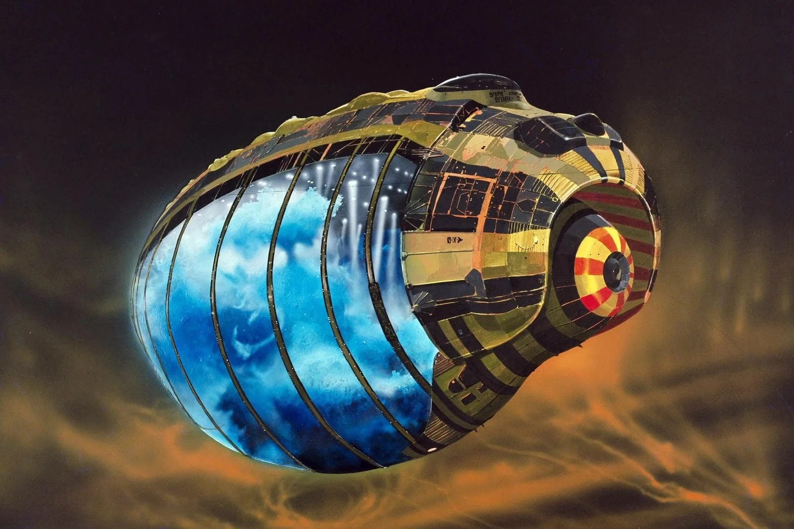 Reproduire l’ensemble de la direction artistique de Jodorowsky dans Dune: Awakening serait sans doute trop extrême, tant elle contraste avec l’approche réaliste et brutale de Funcom. Le vaisseau baroque dessiné par Chris Foss, par exemple, avec ses formes improbables et ses couleurs criardes, aurait bien du mal à s’intégrer dans le ciel d’Arrakis.