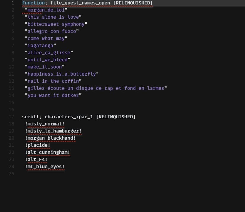 Voici ci-dessous une capture d’écran de différents fichiers du jeu :