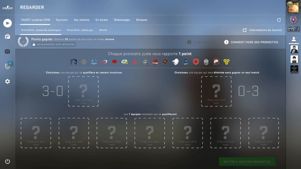 Comme dit précédemment, Valve sponsorise FACEIT pour son tournoi. Une nouvelle gamme de stickers et un challenge Prono’Stick à été mis en place sur le jeu, les bénéfices de l’achat de ces stickers reviendra aux équipes, aux organisateurs et à Valve.