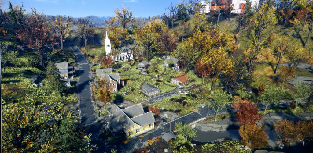 Watoga : située dans la région de Cranberry Bog, cette ville abrite une tour qui sera visible de très, très loin. Un autre élément intéressant est la présence d’un monorail, dont le circuit en ruine rappellera la décadence de notre monde – et le pouvoir d’une nuke, aussi.