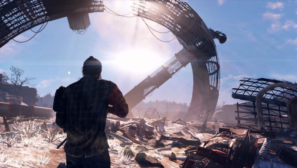 La fameuse station spatiale : dès son apparition dans le premier trailer, cette gigantesque et tragique construction avait attiré les regards. Située dans la Toxic Valley, elle est intéressante pour bien des raisons, et une en particulier : Van Buren. Ce projet de Fallout 3 avorté devait contenir une ruine similaire, contenant des bombes nucléaires. Bethesda semble finalement avoir recyclé le concept, et en sachant qu’il nous faudra récupérer des codes nucléaires durant le jeu, on salive à l’idée des trésors contenus dans ce géant abattu…