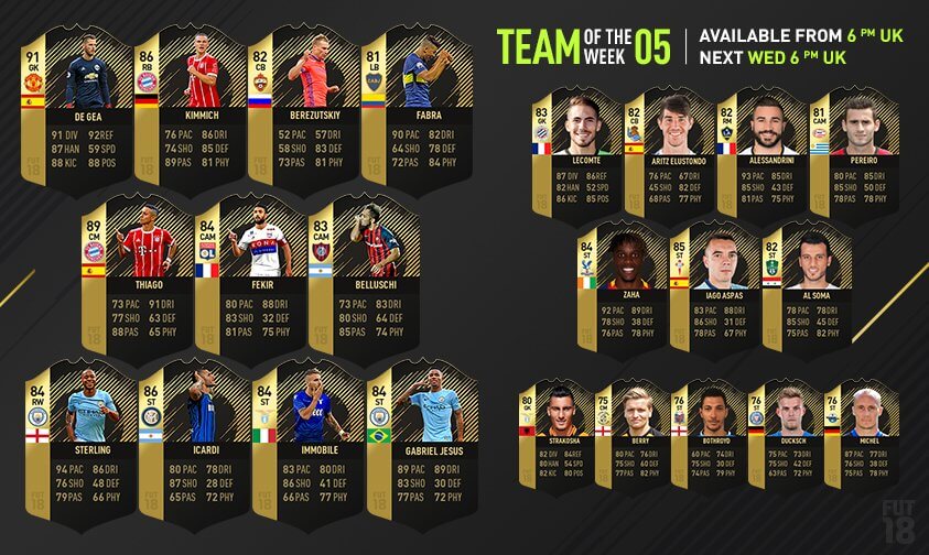 La nouvelle équipe de la semaine sur FIFA 18 arrive et ce jusqu’au 25 octobre. Nette amélioration au niveau des joueurs, cette équipe envoie pas mal par rapport à la semaine derrière.