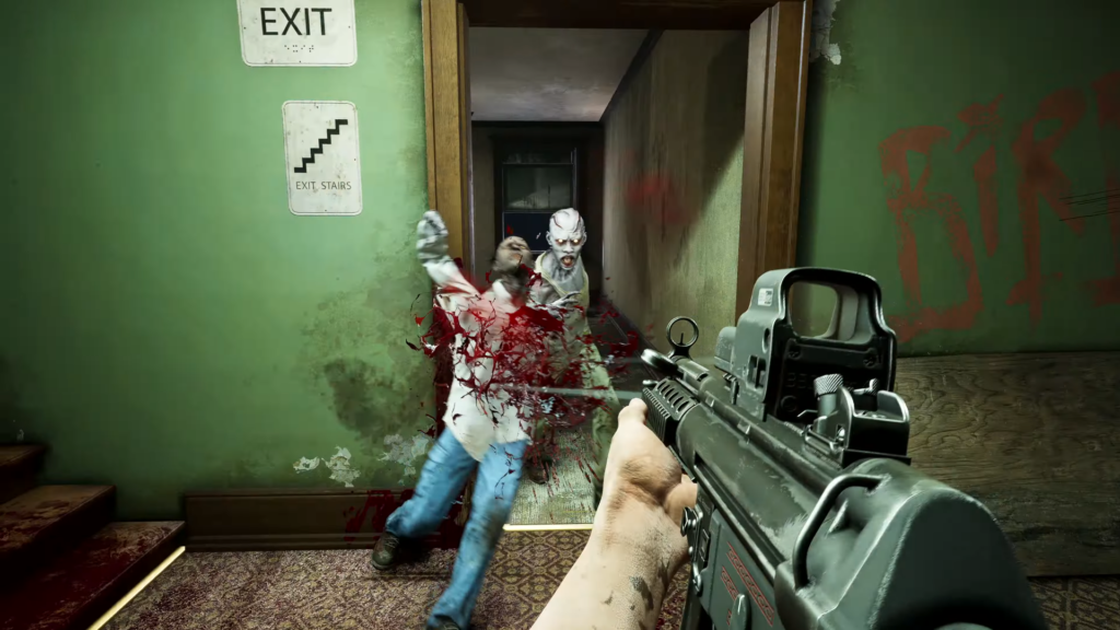 En parlant d’histoire, le jeu commence déjà à s’entourer d’un peu de lore. En effet dans Back 4 Blood vous n’affronterez pas des zombies à proprement parler mais le « Ridden », un parasite qui transforme ses hôtes en de terrifiantes créatures. Vous et vos amis allez devoir les chasser de la Terre, et quand on voit que des gigantesques monstres peuvent sortir du sol, arracher des grilles, et sont sufisaments intelligents pour passer leurs mains dans des portes, ça ne sera pas une partie de plaisir…