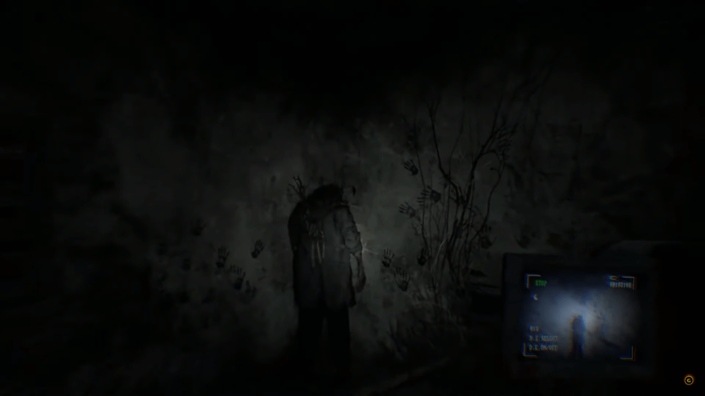 Chose intéressante pour un jeu d’horreur, des mécaniques de puzzle seront présentes. J’ai ainsi dû découvrir la combinaison d’un cadenas pour accéder à une grange pas très rassurante. Les solutions de ces énigmes se trouvent autour de vous, il faudra donc être attentif à l’environnement immédiat et ses joyeusetés ; autre nouveauté intéressante, le surnaturel. Nouveauté dans le sens où si le héros tend à basculer lentement dans la folie, le paranormal pourra être ainsi à son service. Ainsi, devant une porte fermée, j’ai regardé un enregistrement et ai stoppé au moment où la porte s’ouvrait. Résultat, elle s’est aussi ouverte dans le présent ! Il est bon de le préciser, c’est une développeur qui m’a indiqué la solution, cette dernière ne me paraissant pas évidente.