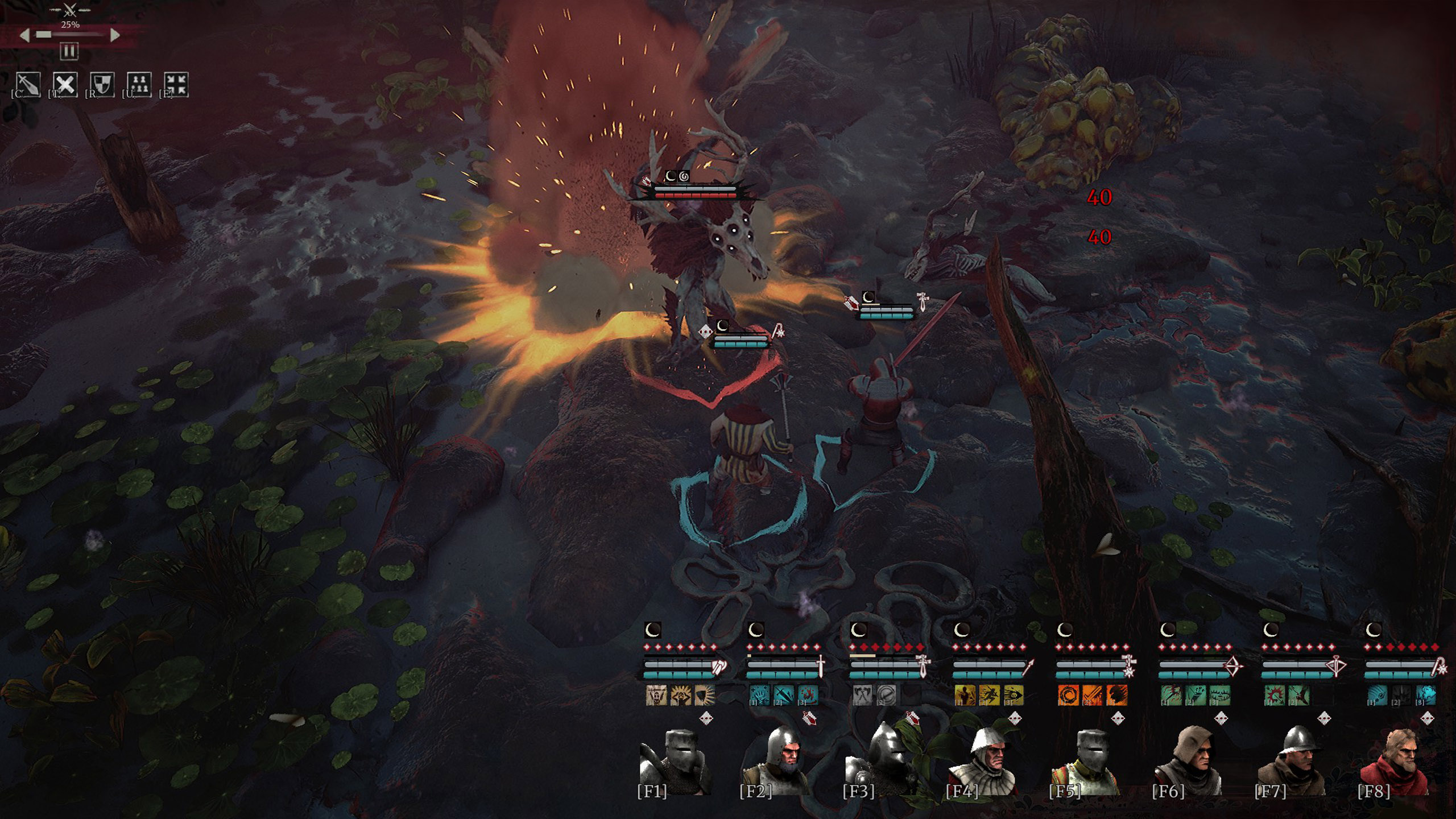 Les combats sont plus tactiques que jamais, et nécessiteront de la mico-gestion pour réduire les pertes au minimum. Si le monde slow motion permet d’avoir plus de temps pour prendre les décisions ou admirer les différents pyrotechniques, Band of Crusaders semble offrir ce fameux stress de combat qui fait la qualité du genre. Les croisés ont une synergie de par leurs rôles respectifs, mais mettre un tank à l’avant ne sera pas suffisant ; esquiver les attaques de zone sera nécessaire à chaque instant, et répliquer avec des bombes permettra d’infliger des dégâts rapidement – et avec beaucoup de style, ce qui est important.