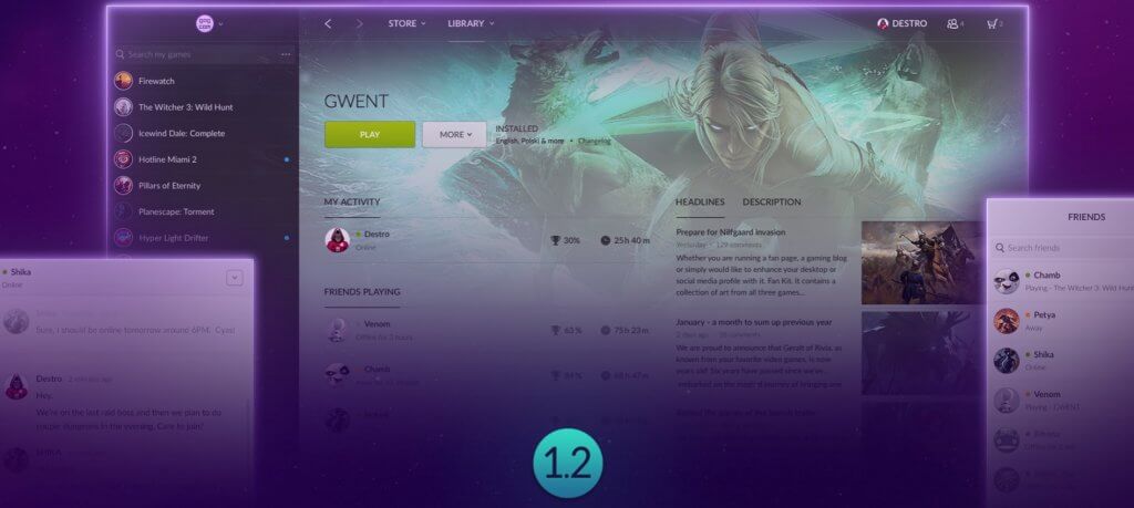 Après des décennies (bon, on exagère un peu) de test, le logiciel GOG Galaxy sort de sa bêta ! La version 1.2 a été déployée aujourd’hui, et elle apporte tout un tas de nouvelles fonctionnalités :