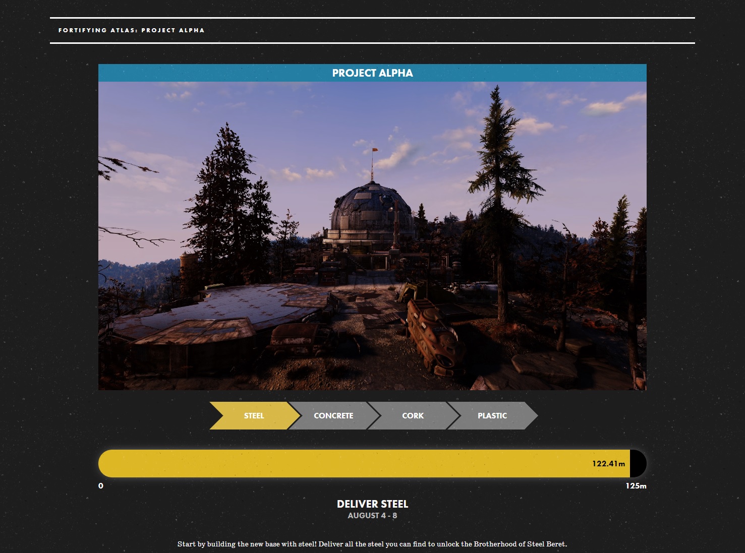 Petit à petit, les Appalaches continuent d’évoluer. Après l’imposante mise à jour Wastelanders qui a apporté les Colons et les Pillards, le monde de Fallout 76 continue d’évoluer avec avec l’event Fortifying Atlas. Lancé depuis début août et divisé en quatre phases, cet ajout assez intéressant demande aux joueurs de rejoindre l’observatoire ATLAS afin d’y rencontrer un certain Russel Dorsey. Celui-ci est convaincu du retour imminent de la Confrérie de l’Acier, et nous demande ainsi de fortifier l’imposant bâtiment dans l’idée de leur arrivée.
