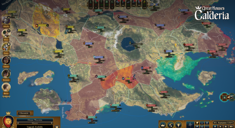 Annoncé en fin d’année dernière, Great Houses of Caldeira est un jeu de stratégie politique qui n’est pas sans rappeler l’excellente saga Crusader Kings. Par la diplomatie, le commerce, la guerre ou même les mariages, l’objectif sera d’établir une dynastie pérenne et de s’attribuer le titre de Vice-roi.