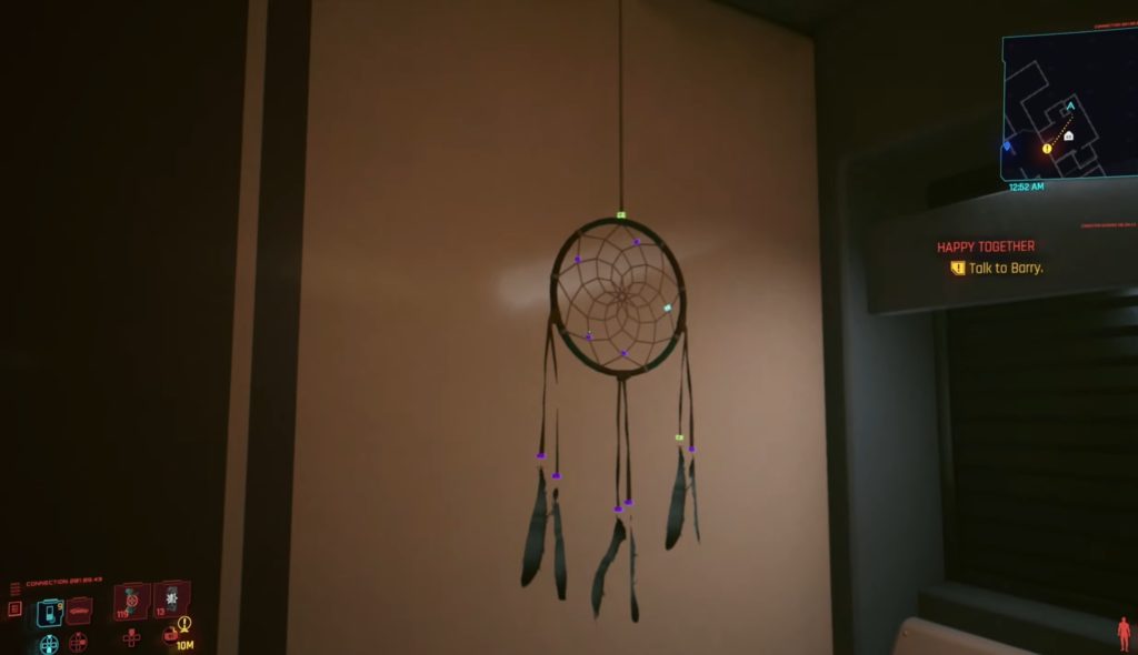 Vous l’aurez probablement remarqué, il manque Judgement et The Devil – c’est normal. Une fois les vingt premiers éléments du Tarot collectés, retournez voir Misty, qui vous récompensera avec un bien joli attrape-rêves. Celui-ci s’accrochera automatiquement au-dessus du lit de V mais, malheureusement, il n’y aucune fonctionnalité de gameplay rattachée…
