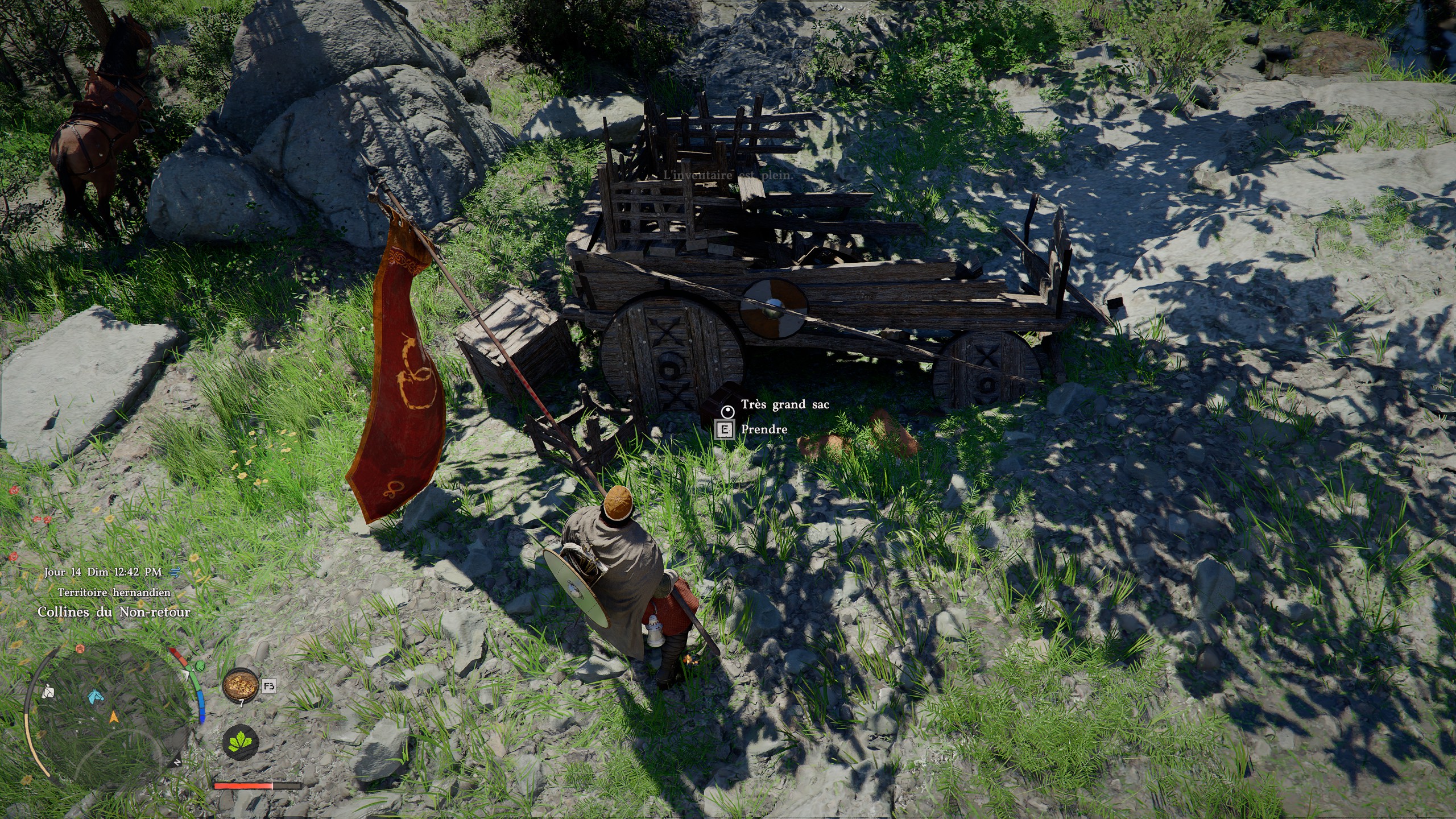 Il vous faudra pour cela aller à l’ouest de Demeniss, où vous trouverez les ruines d’un chariot. Il y a trio de bandit à proximité, mais ils ne devraient pas poser trop de problèmes ; le challenge réside surtout dans le fait d’accéder à cet endroit, la topographie montagneuse de Crimson Desert ne facilitant pas les choses. Ensuite, vous n’avez plus qu’à looter le sac, et à vous l’inventaire supplémentaire !