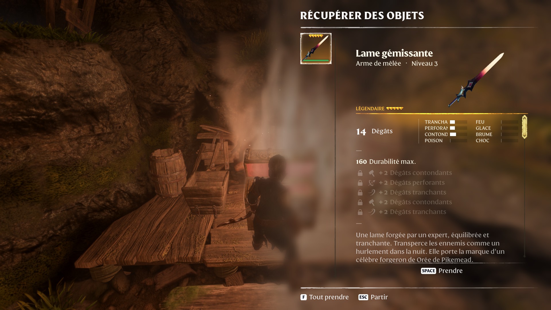 Sans aucun doute, l’arme la plus intéressante et la plus puissante à avoir (facilement) au début de votre aventure est Lame Gémissante.