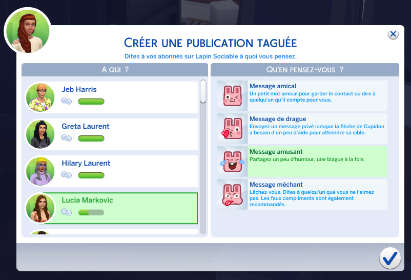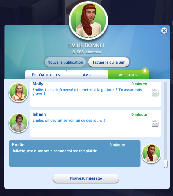 Votre Sim peut ainsi partager ses activités récentes ou bien quelque chose qu’il a vécu durant sa journée, ma Sim n’a jamais eu autant que maintenant. Attention à l’armée de meilleur ami potentiel, il ne se passe pas une journée sans que deux ou trois Sims débarquent chez moi pour demander d’être mon meilleur ami. Un peu collant ces amis …