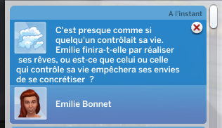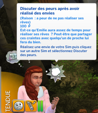 - Peur de ne pas réaliser ses rêves : Ce Sim se sent insatisfait de sa vie. Il sera parfois contrarié par le cours que prend sa vie.