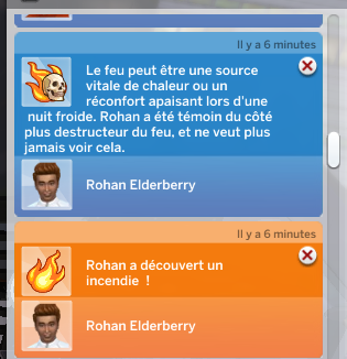 - Peur du feu : Ce Sim voudra fuir et se cacher s’il voit du feu, et aura plus de chances de provoquer des incendies par accident.