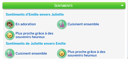 - Il me comprend : Ce Sim se sent totalement accepté auprès de ce Sim.