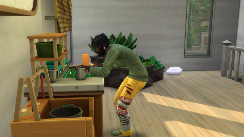 Votre Sim obtient le trait de caractère Eco-ingénieur. Il terminera plus rapidement les améliorations écologiques des objets et obtiendra toujours des pièces d’amélioration écologiques lorsqu’il recyclera.