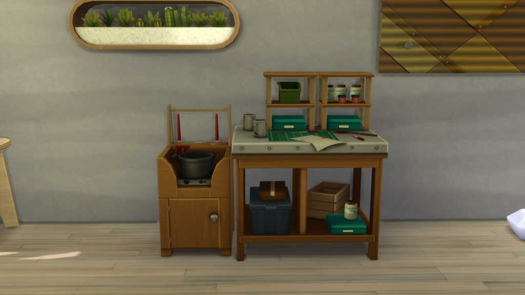 Vous aurez besoin de débris et morceaux, de cire de soja – à acheter ou à récolter sur des plants de soja, nombreux dans Evergreen Harbor – et de colorants. Si vous possédez les Sims 4 Saisons, vous pourrez également récupérer de la cire d’abeille dans la ruche pour façonner vos bougies. Les enfants peuvent utiliser cette table pour fabriquer des bougies trempées.
