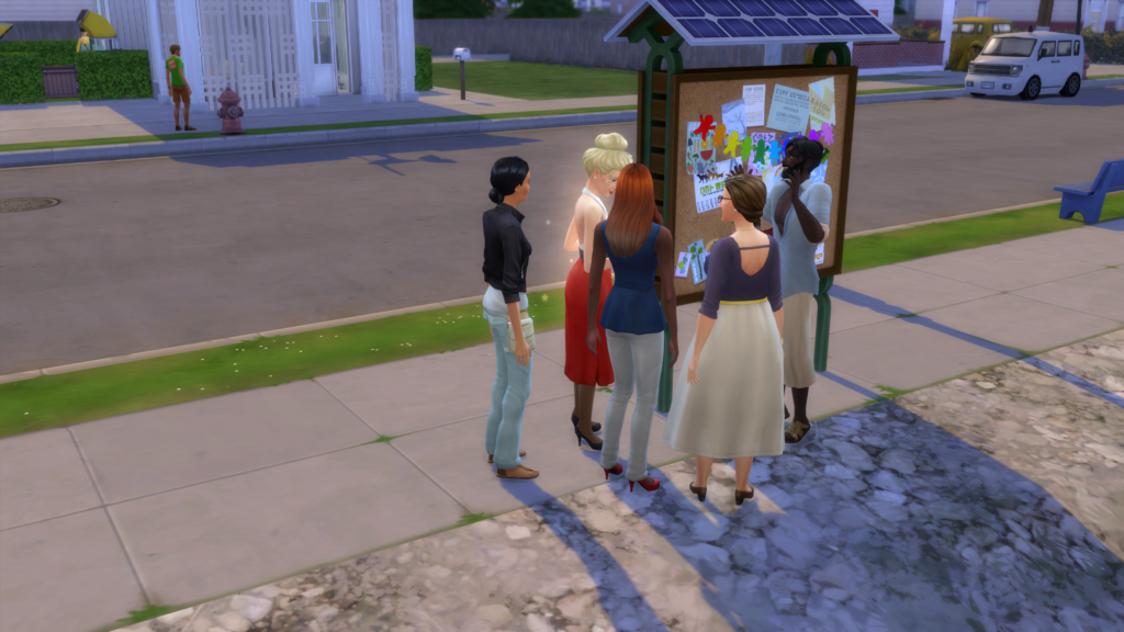 Votre Sim pourra voter via la boîte aux lettres ou le tableau de vote communautaire public. Tous les quartiers de la ville d’Evergreen Harbor ont un tableau de vote dans leur rue, qui vous sera présenté par Knox et Bess à votre arrivée.
