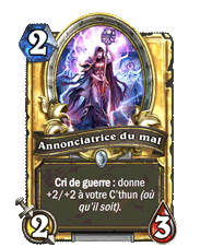 Il faut savoir que Blizzard nous fera un petit cadeau à la sortie de l’extension, puisque que nous aurons droit à 3 boosters DtA gratuits ainsi que C’Thun débloqué directement. Un petit plus qui permettra de commencer directement à imaginer des decks avec C’Thun.