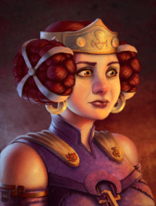 Après l’assassinat de son époux et la pétrification de son père, Moira retourna à Forgefer pour faire valoir sa prétention au trône. Mais les méthodes brutales qu’elle employa donnèrent naissance au Conseil des Trois marteaux dont elle est la représentante des Sombrefers.