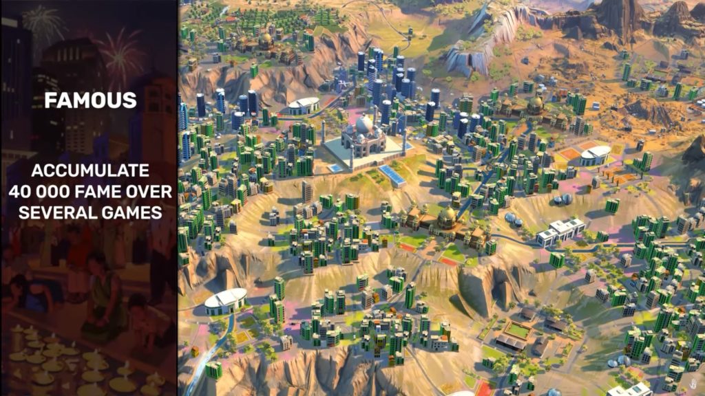 - Célèbre : Accumulez 40 000 points de renommée sur plusieurs parties.
