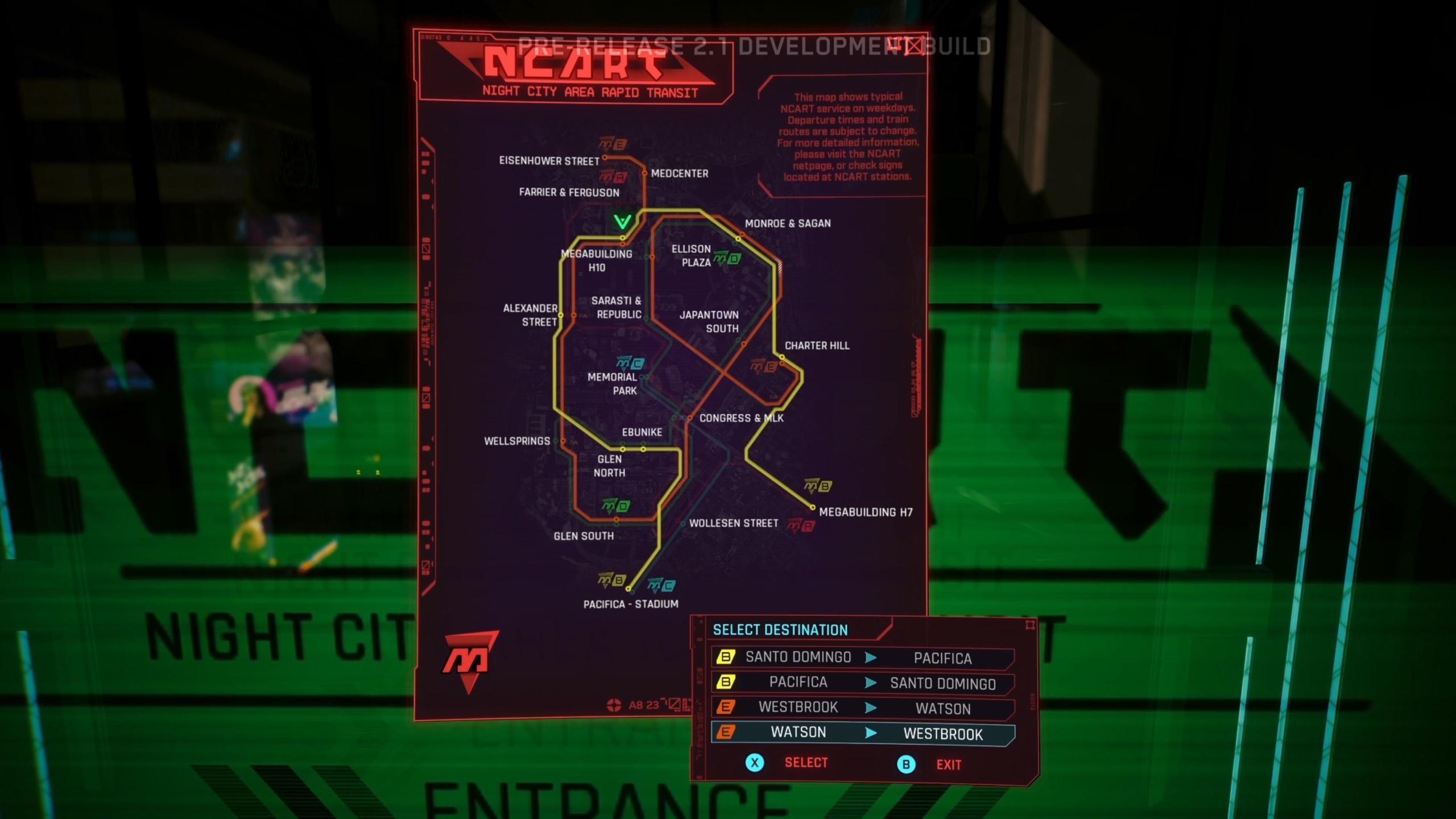 - Système de métro. Il sera possible de l’utiliser pour fast travel, ou simplement de monter dedans et se laisser transporter à travers Night City.