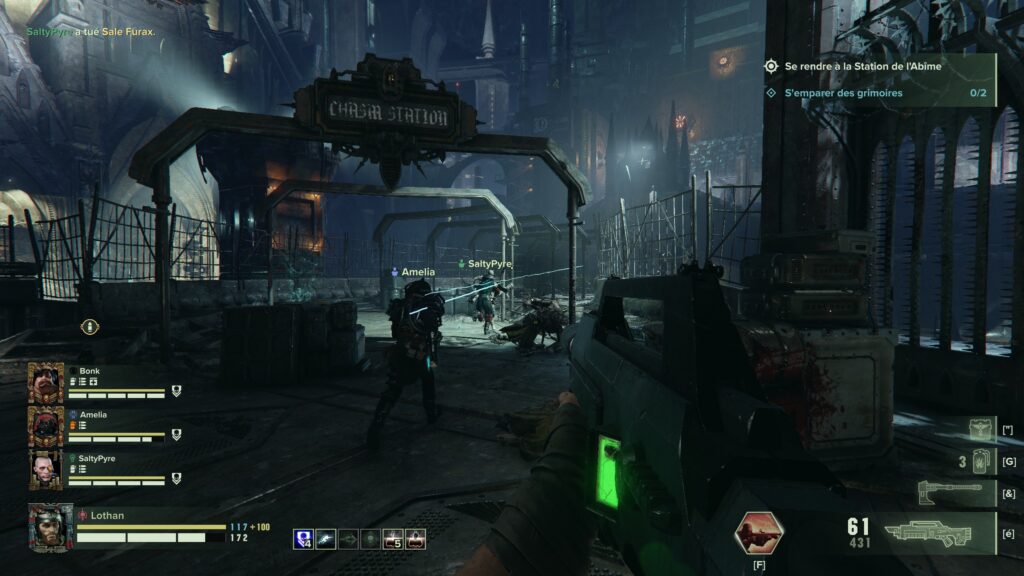 Les passifs de groupe sont également bien utiles, puisque Darktide ne peut se gagner qu’à force de coopération et de synergie. Bien que ne jouant que vétéran, j’ai regardé les arbres des autres classes, et Fatshark a mis un soin particulier dans chacun d’entre elle. Les « combos », à défaut d’un meilleur mot, permettent d’obtenir d’excellents résultats avec toutes les combinaisons possibles, les forces des uns annulant les faiblesses des autres.